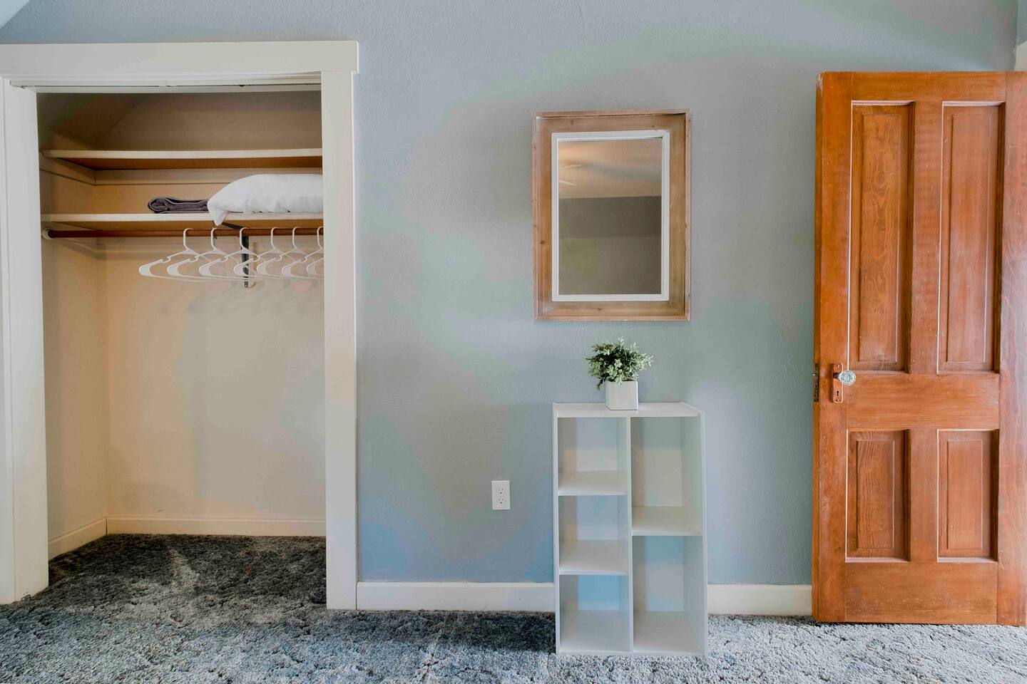 You will receive your smart lock code for the front and back doors with your check-in instructions. There is parking available on the street around the home :)